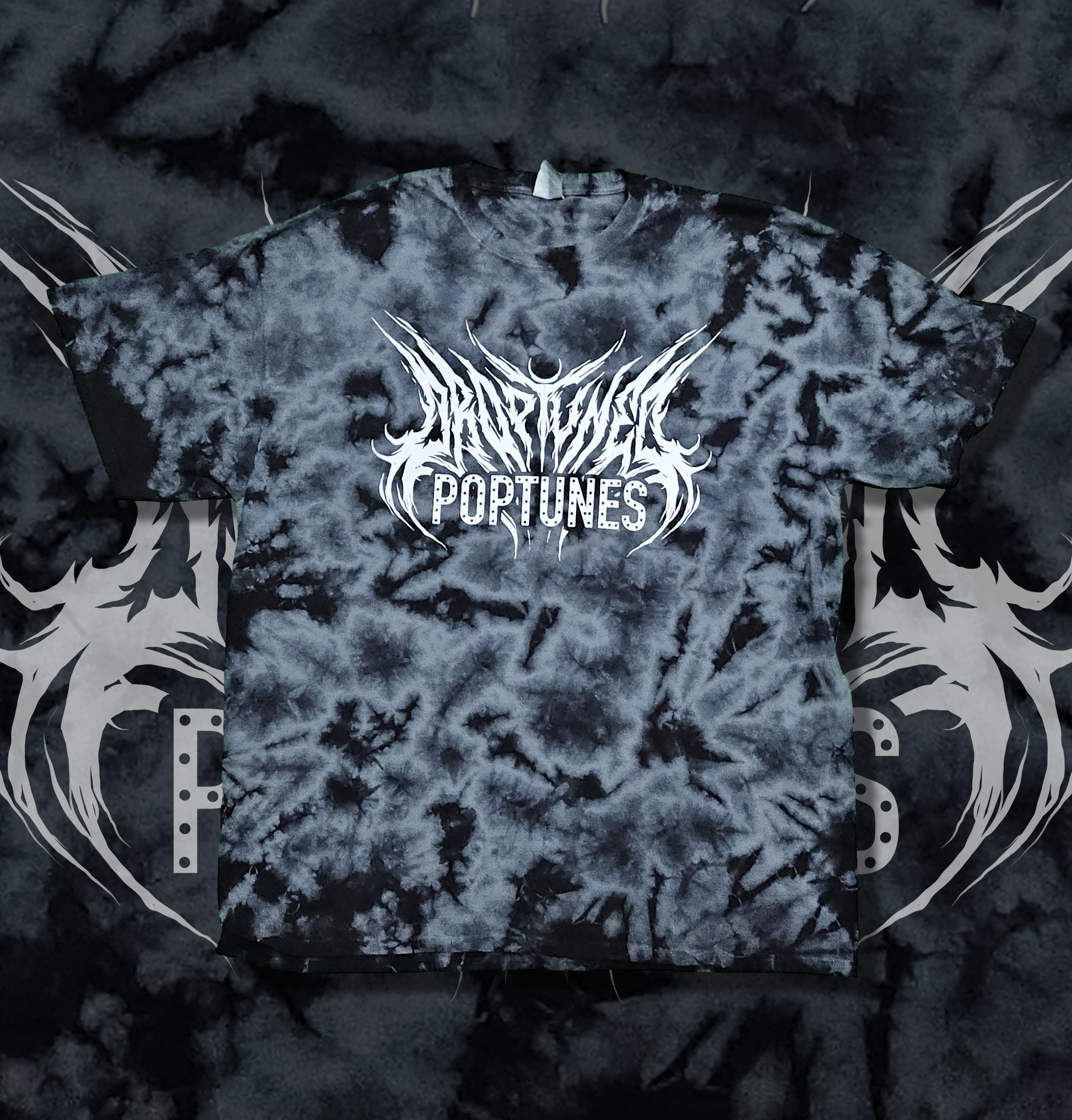 Full color 100% ring spun cotton black T shirt featuring the Droptuned Poptunes logo.